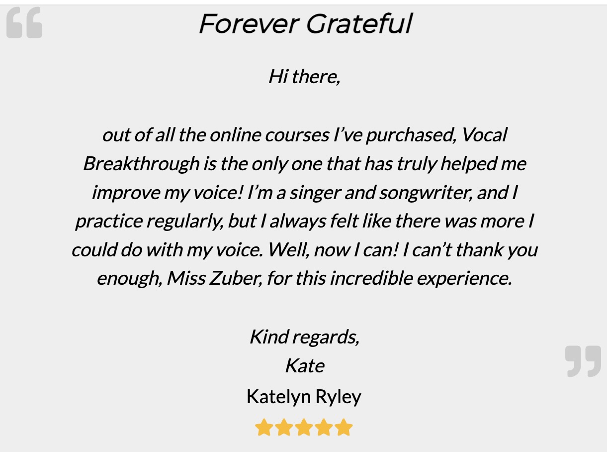 The Vocal Breakthrough Course was a game changer. I can’t recommend Danielle's course enough!